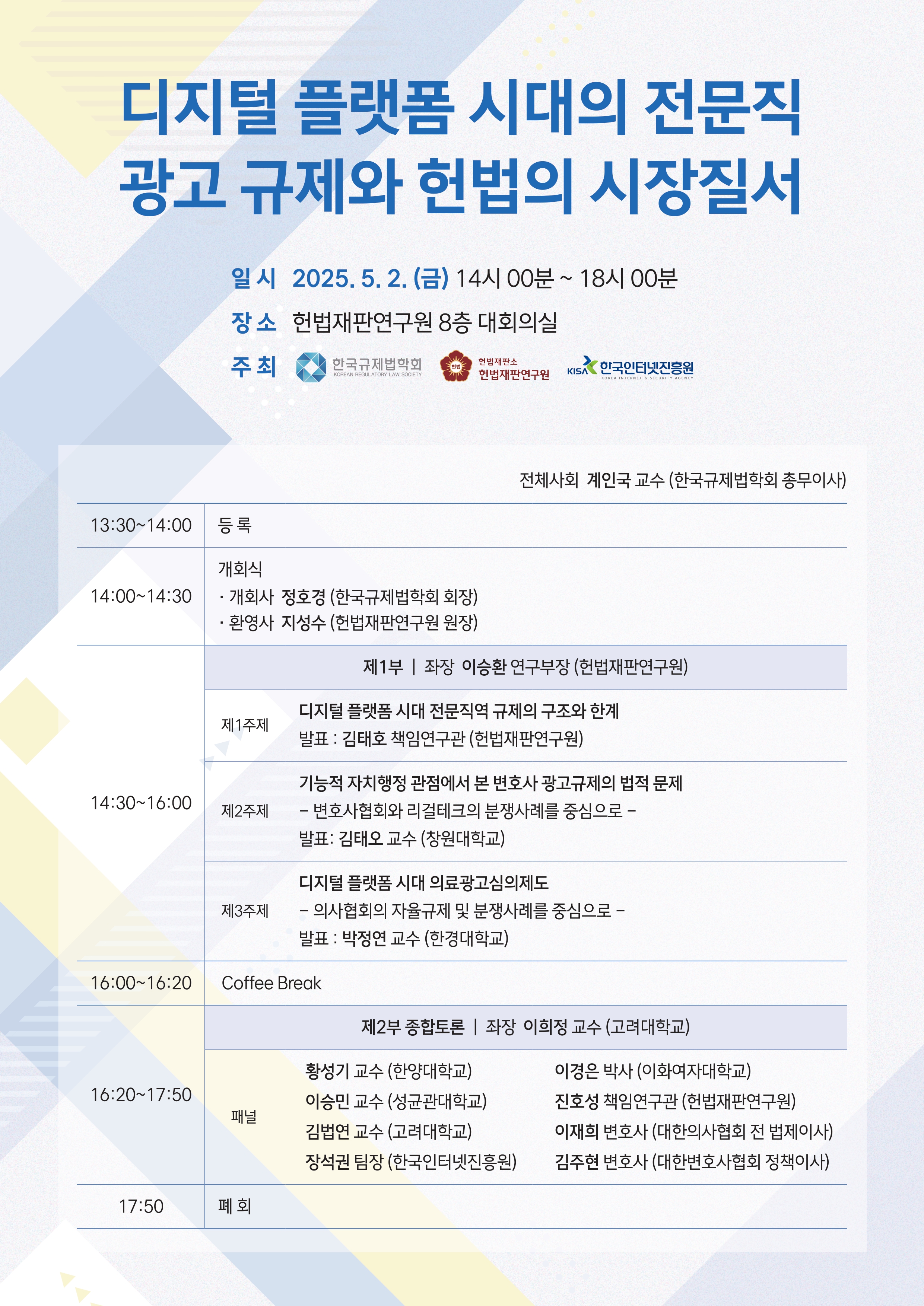 [한국규제법학회] '25.5.2. "디지털 플랫폼 시대의 전문직 광고 규제와 헌법의 시장질서"