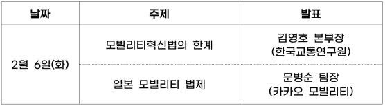 - 참석 범위 : 1. 모빌리티법에 관심 있는 규제법학회 회원, 2. 사전 신청 회원