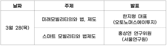 - 참석 범위 : 1. 모빌리티법에 관심 있는 규제법학회 회원, 2. 사전 신청 회원